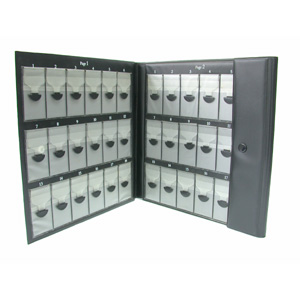 With PVC pockets to hold keys. Can hold up to 72 keys.